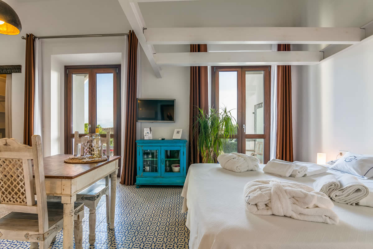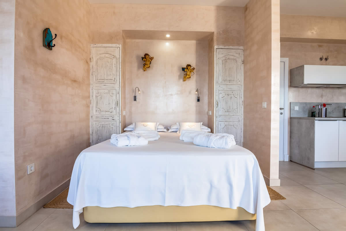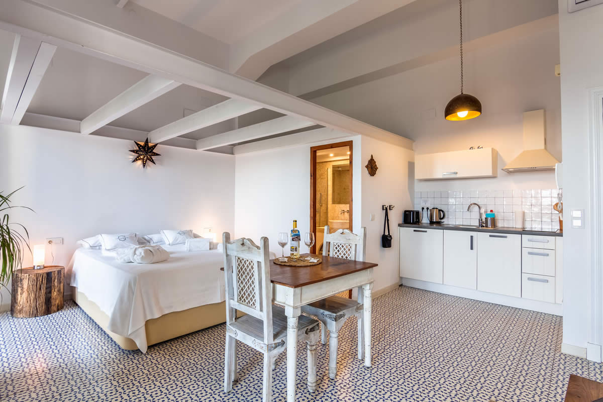 Con una maravillosa orientación suroeste, estos 3 estudios están ubicados en los pisos superiores de la primera y segunda planta. Equipados con cama matrimonial, ofrecen espacio para 2 personas para unas vacaciones relajadas. Los estudios están completamente equipados con una cocina moderna y un baño con ducha. Como detalle especial, disponen de una bañera en frente de la ventana, para tomar un baño romántico disfrutando de las fantásticas vistas hacia África.