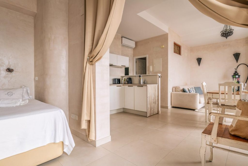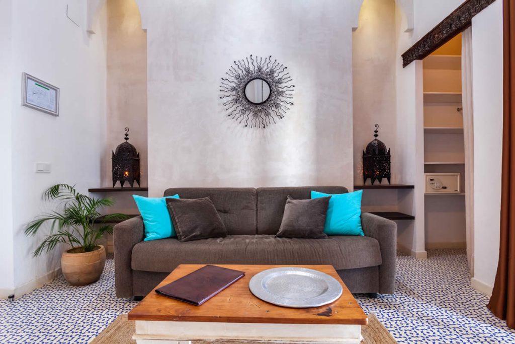 Con una maravillosa orientación sur, estos apartamentos incluyen una cama matrimonial de 160 cm y un sofá cama adicional de alta calidad en el salón, que ofrece para tus vacaciones relajantes espacio suficiente para hasta 4 personas (un adulto o dos niños más). Los apartamentos están amueblados en estilo marroquí y tienen una cocina moderna totalmente equipada y un baño con ducha.