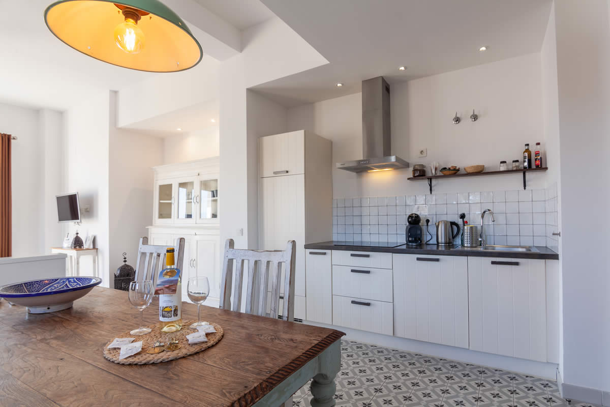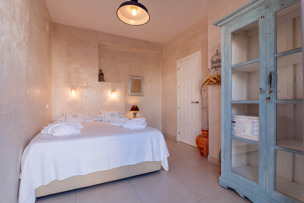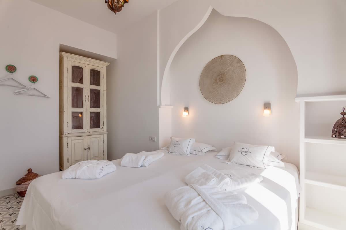 Estos 2 espaciosos apartamentos amueblados en estilo marroquí se encuentran en el primer piso. Totalmente orientados al sur, con grandes balcones puede disfrutar de las puestas de sol y de sus comidas con vistas al Estrecho de Gibraltar. Estos apartamentos constan de un dormitorio y un salón, así como una cocina moderna y totalmente equipada. La habitación consta de cama matrimonial y un sofá de alta calidad en el salón.