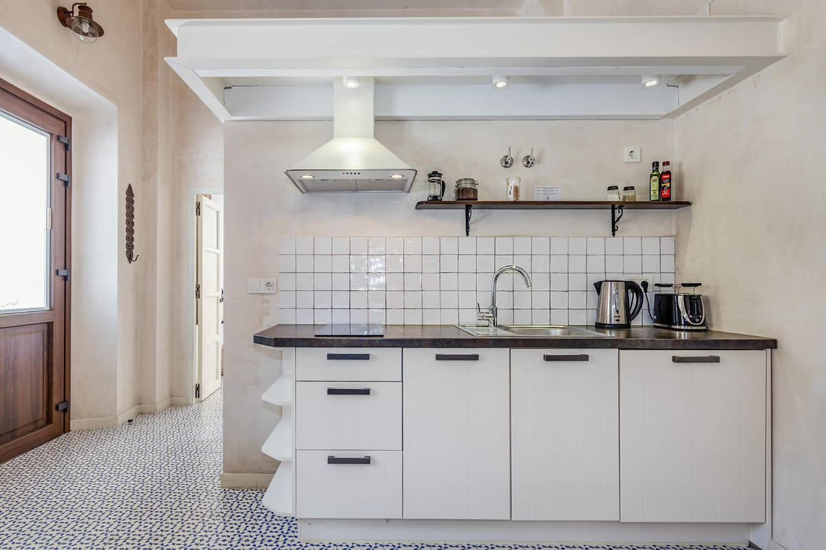 Equipado con una cocina moderna y un baño con ducha, sus techos de 4 metros de altura característicos del estilo mediterráneo del edificio histórico.