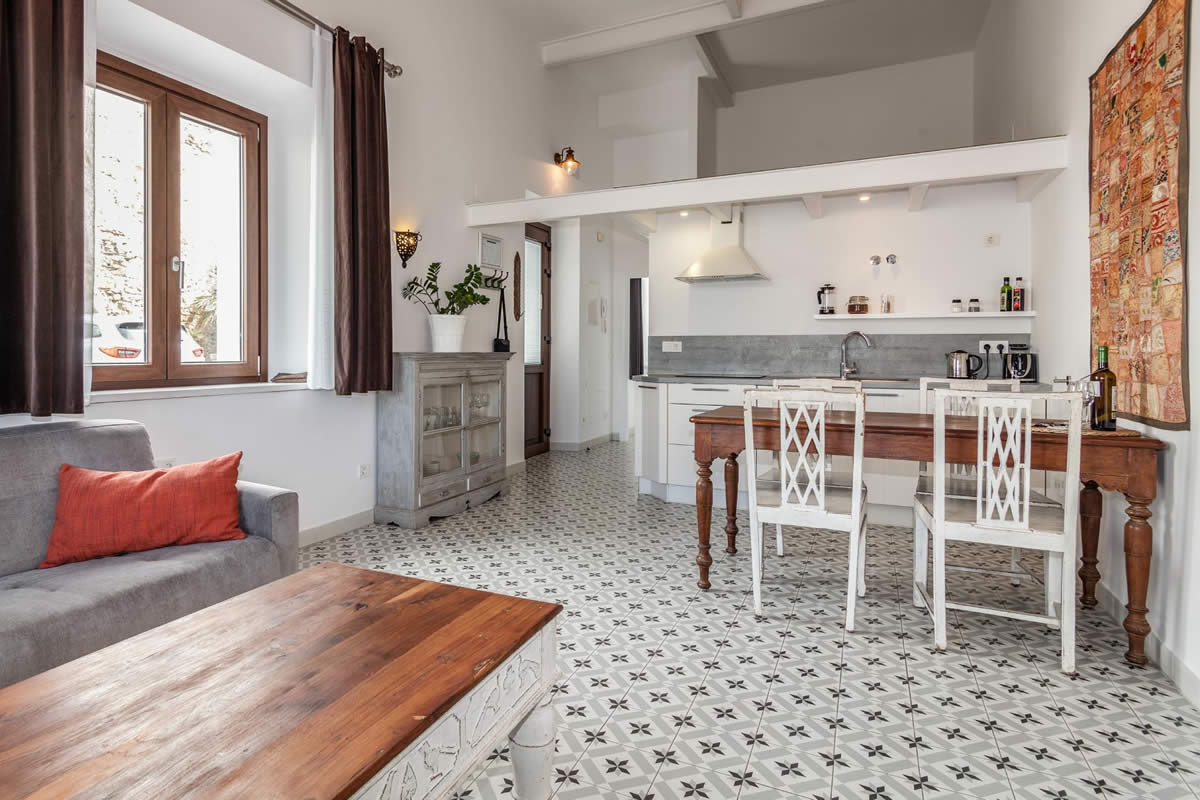 Estos 2 amplios y luminosos apartamentos están orientados al oeste, frente al casco antiguo y el puerto. Con un dormitorio y un sofá cama adicional de alta calidad en el salón que permite que duerma un adulto o dos niños más, los apartamentos ofrecen espacio para hasta 4 personas. Están equipados con una cocina moderna y un baño con ducha. Los techos de 4 metros de altura son característicos del estilo mediterráneo del edificio histórico. ¡Debes verlo!