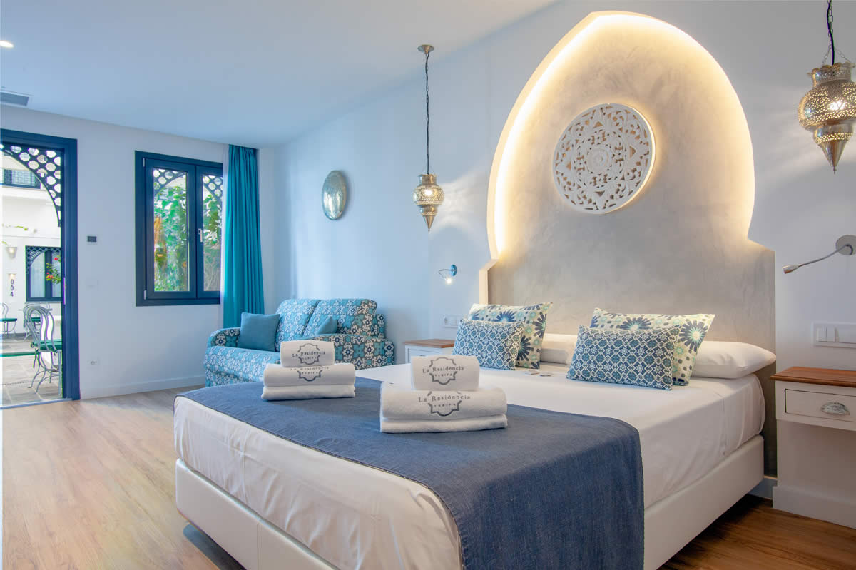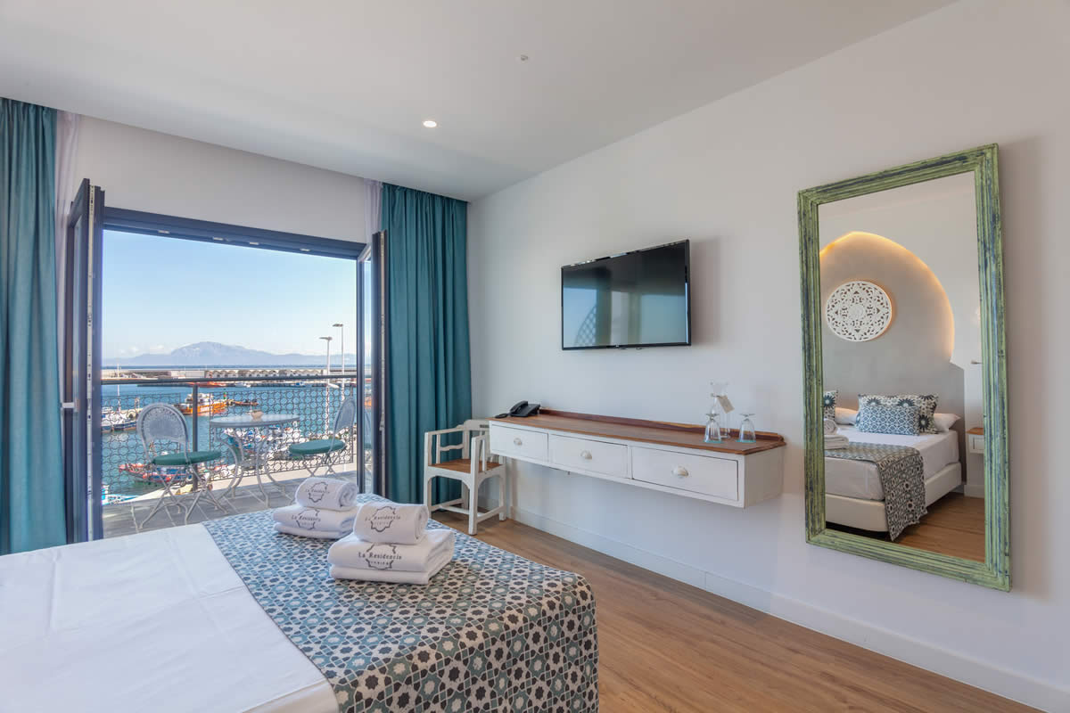 Das Hotel La Residencia Puerto verfügt über 55 Zimmer, die sich auf drei Etagen des Hotels verteilen. Wählen Sie Ihre Aussicht, Ihr Zimmer, Ihr eigenes Abenteuer…. Die in sanften Tönen gehaltenen, hellen Zimmer sind für Ihren maximalen Komfort ausgestattet. Wir begrüßen Ihr Haustier gerne in unseren Zimmern mit Terrasse, im Innenhof. Das historische Zentrum und die Strände von Tarifa sind vom Hotel aus zu Fuß erreichbar…
