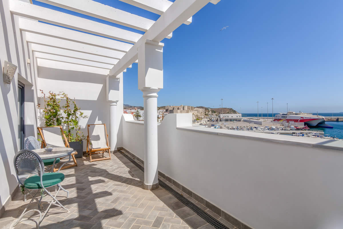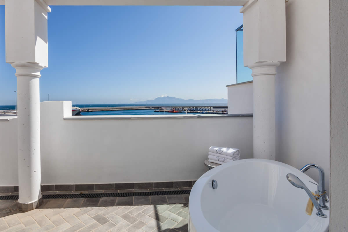 Wir sind nur 14 km von Marokko entfernt. Von den Balkonen der Zimmer mit Meerblick aus können Sie den Berg Jebel Musa, die Boote, die die Meeresenge von Gibraltar durchqueren, und das bezaubernde Schauspiel der Fischerflotte im Hafen von Tarifa beobachten. Genießen Sie Ihren Aufenthalt und diese privilegierte Aussicht.