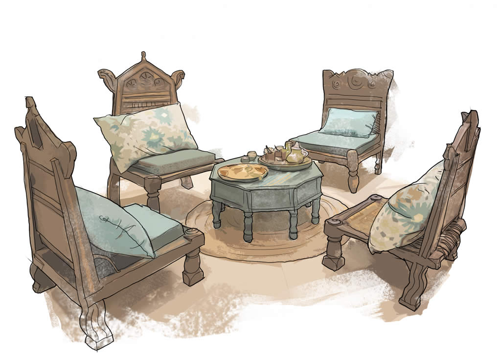 - Buffet con té y agua fresca, frutos secos y frutas.